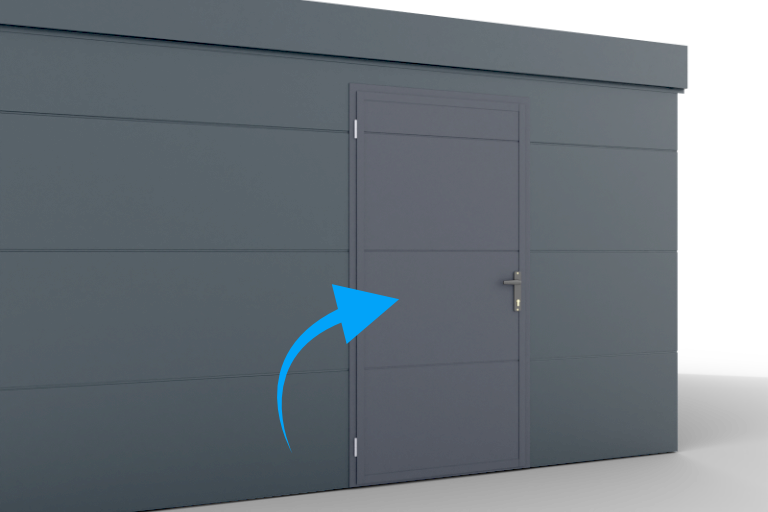 - Optional mit Sektionaltor, Schwingtor oder Zweiflügeltor